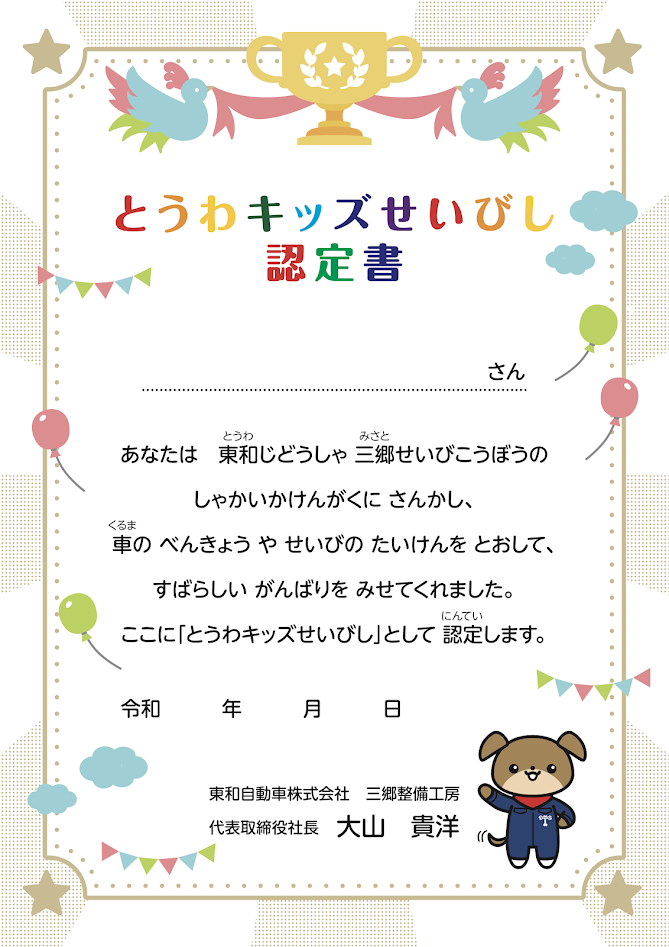 **「とうわキッズ整備士認定書」**を一人ひとりに授与!!